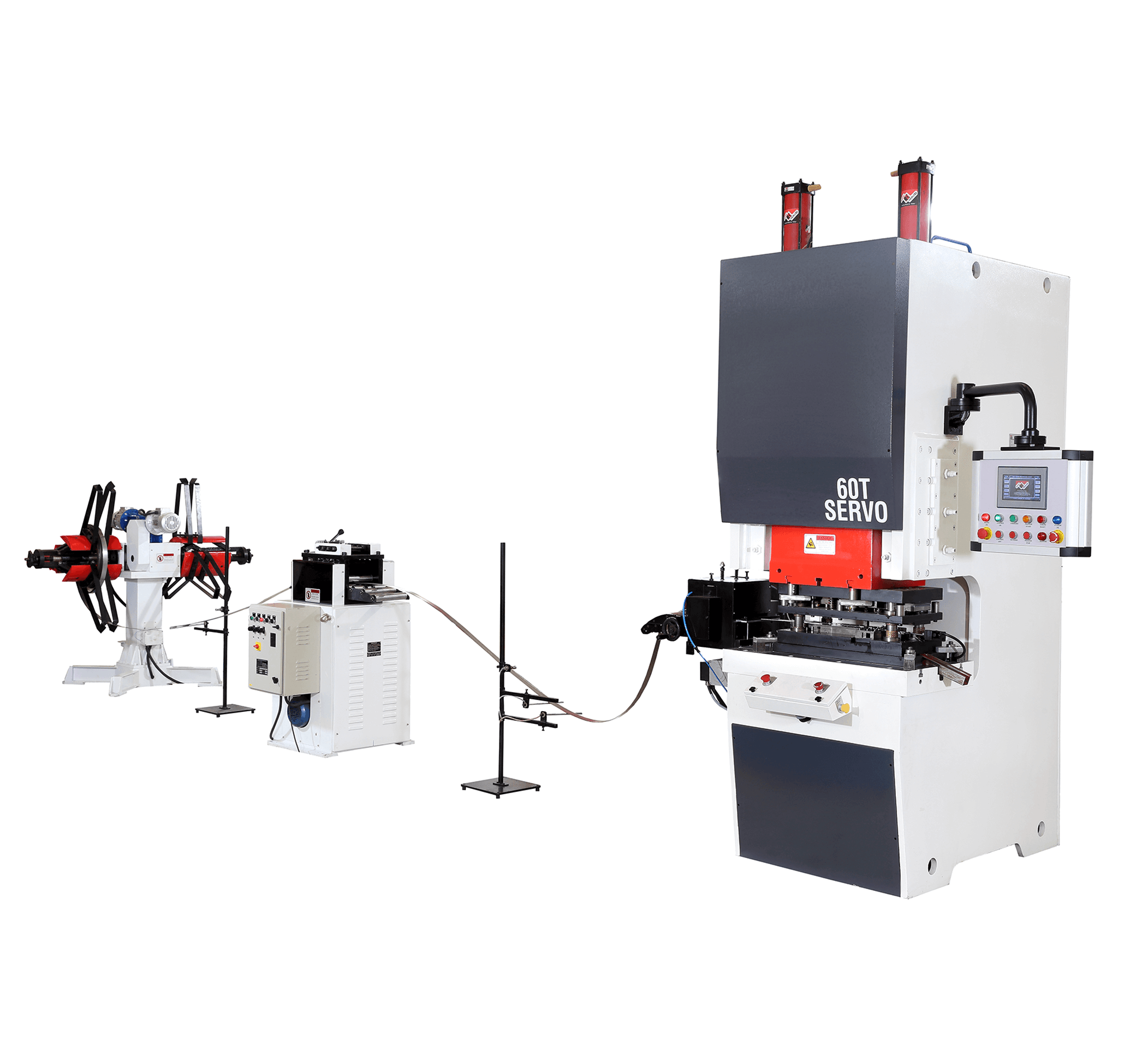 single-point, C-frame high speed servo mechanical press with coil feeder